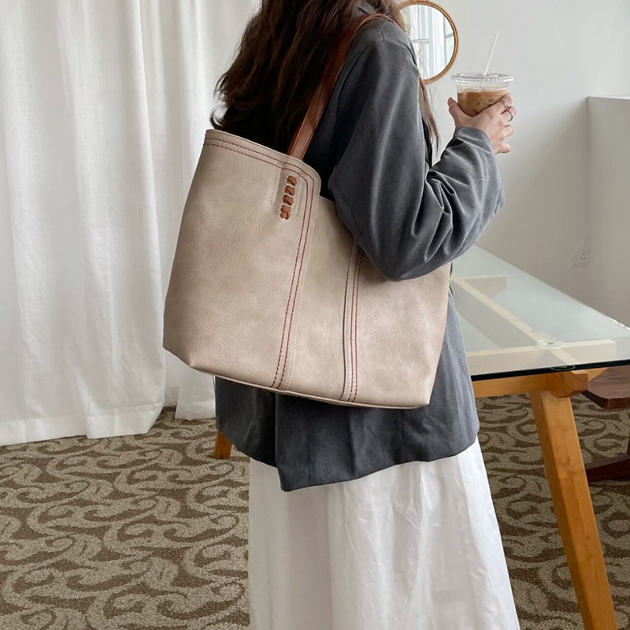 レディースシンプルワンショルダートートバッグ 【LB0035】