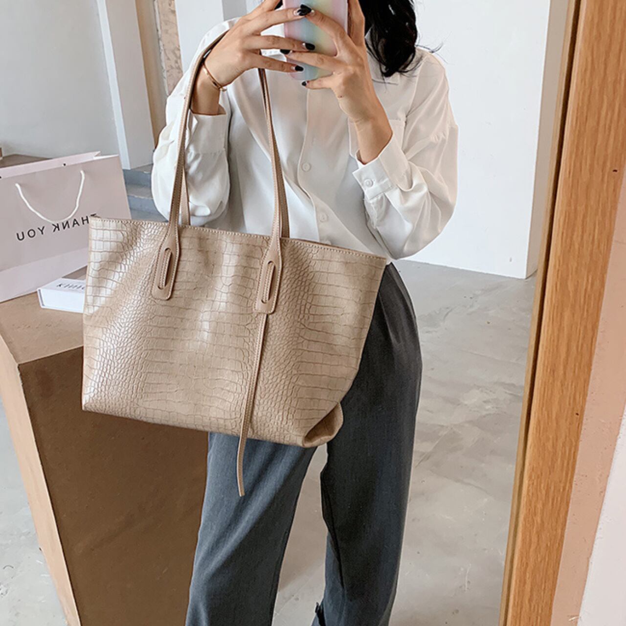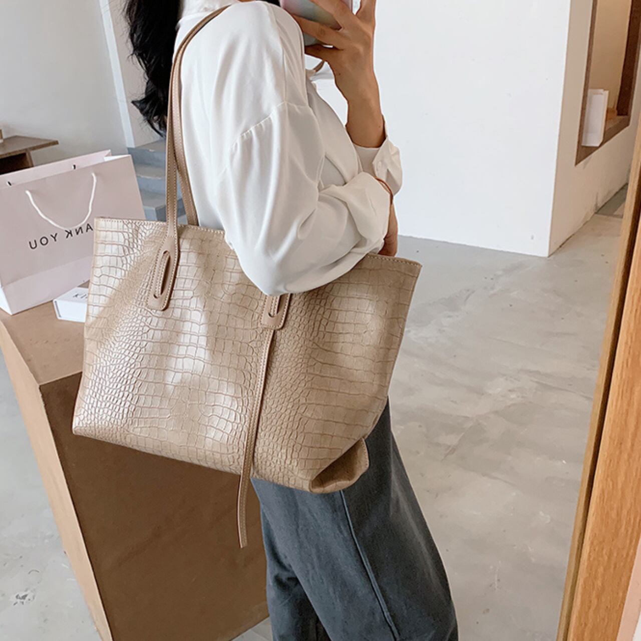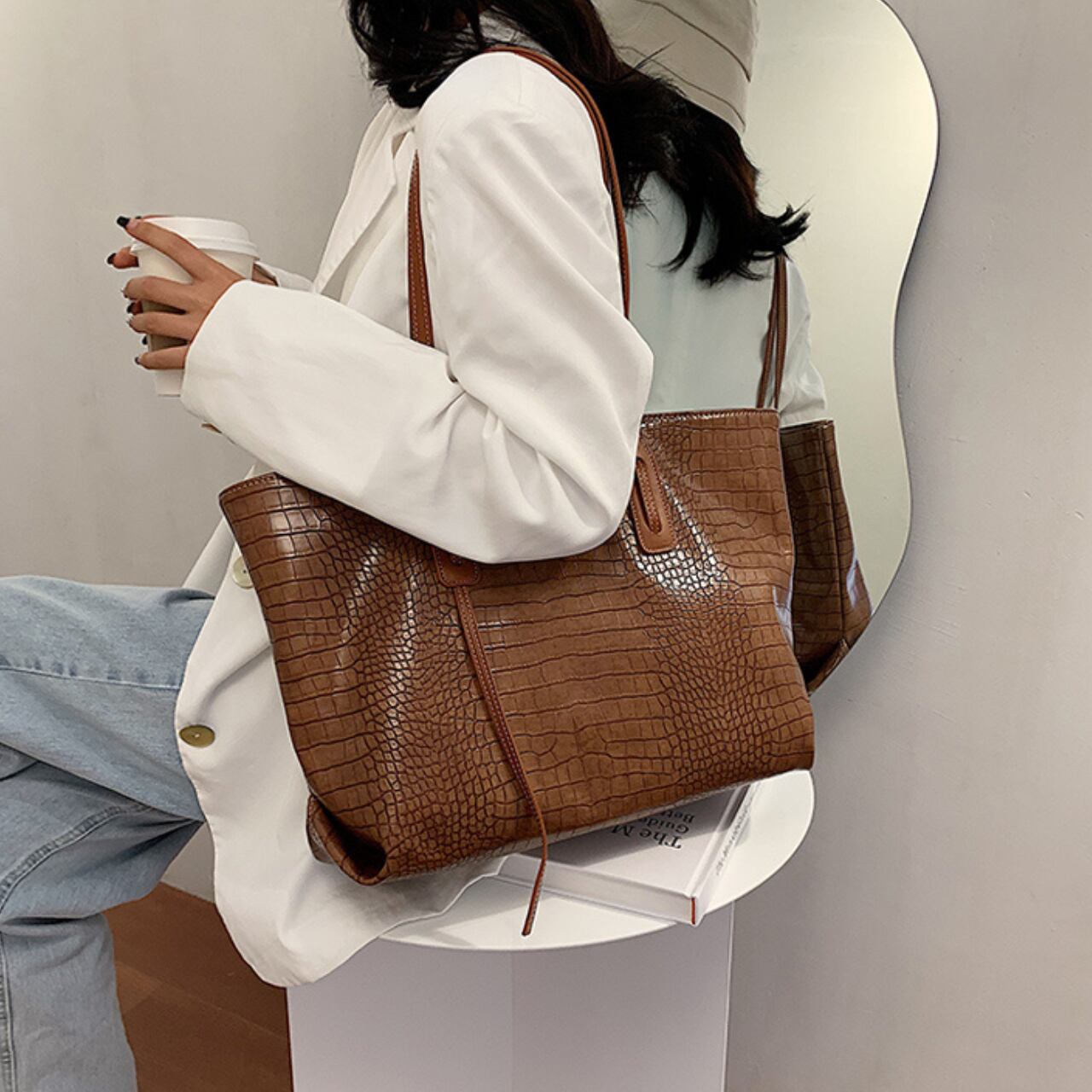 トレンディなクロコダイル柄レディーストートバッグ 【LB0036】